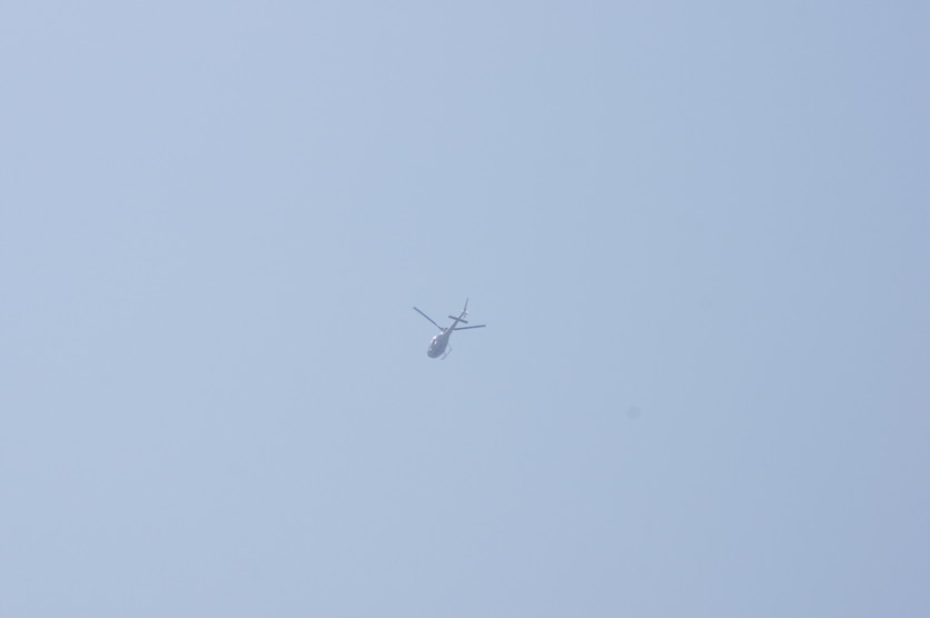 ヘリが飛んでます。